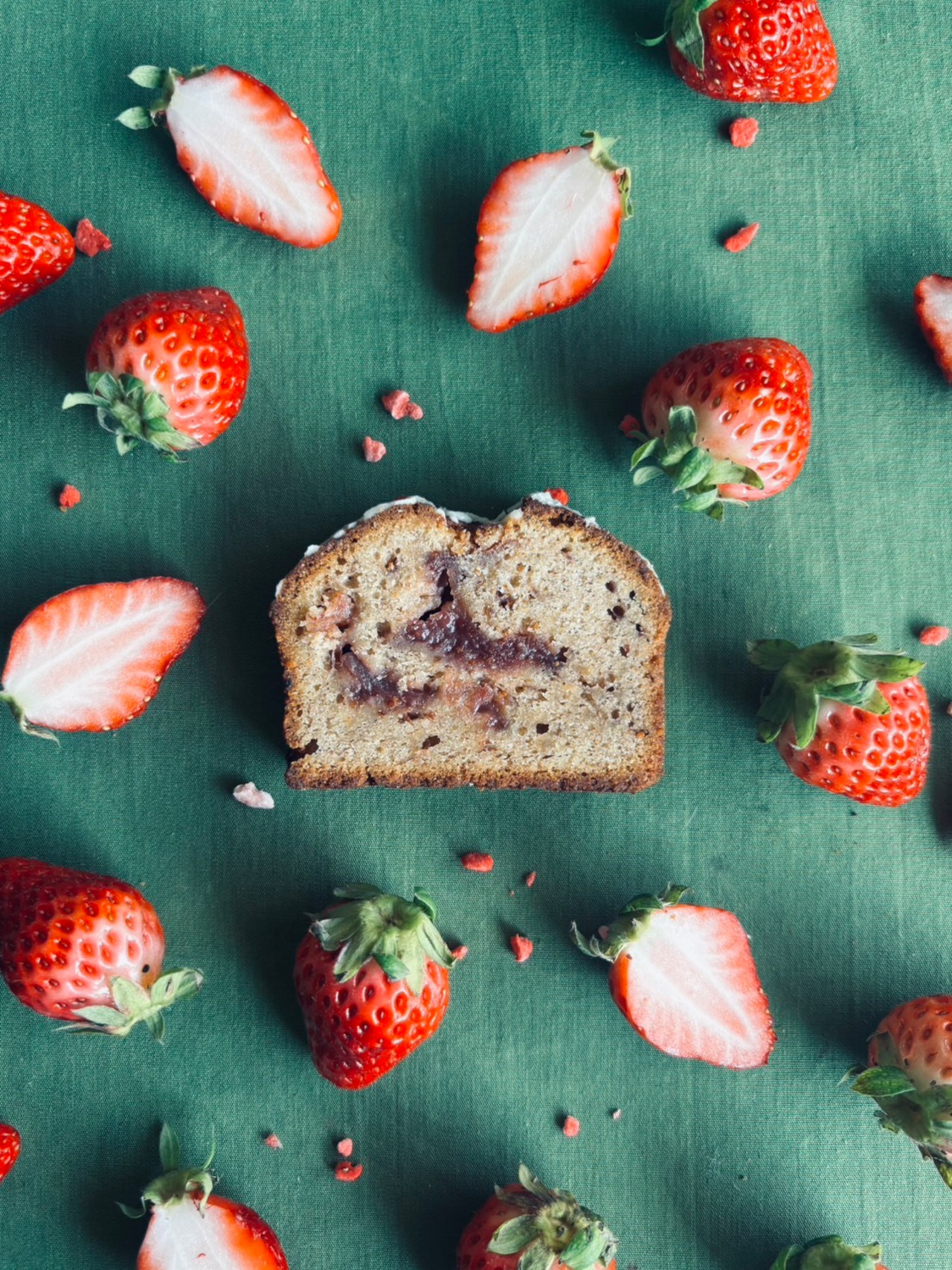 バター(国内製造)、卵、小麦粉、砂糖(グラニュー糖、きび砂糖)、苺、アーモンドプードル、練乳(生乳、しょ糖)、フリーズドライストロベリー、バルサミコ酢(ブドウ酢、濃縮ブドウ果汁/酸化防止剤(亜硫酸塩))、チョコレート(砂糖、カカオバター、全粉乳/乳化剤、バニラ香料)、レモン果汁/ベーキングパウダー(アルミフリー)